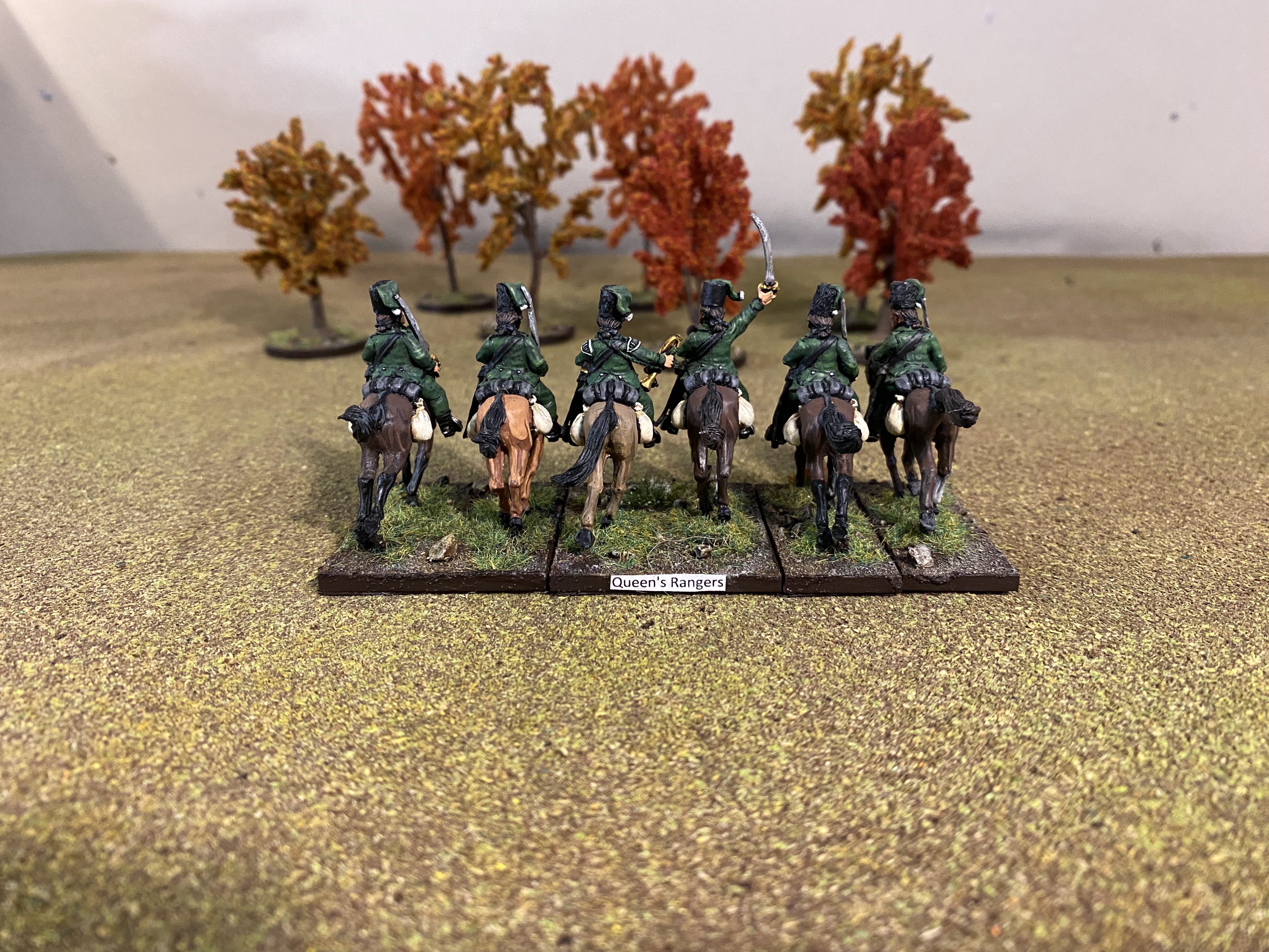 Having recently completed the Queen's Rangers foot regiment I thought I'd add the Queen's Rangers mounted troopers, with half a dozen figures enough to cover most scenarios: