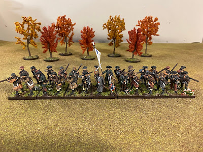 The weekend past saw me finish the last three Continental foot units in the form of two more militia regiments, complementing the three militia regiments already completed, and a unit of skirmish figures: